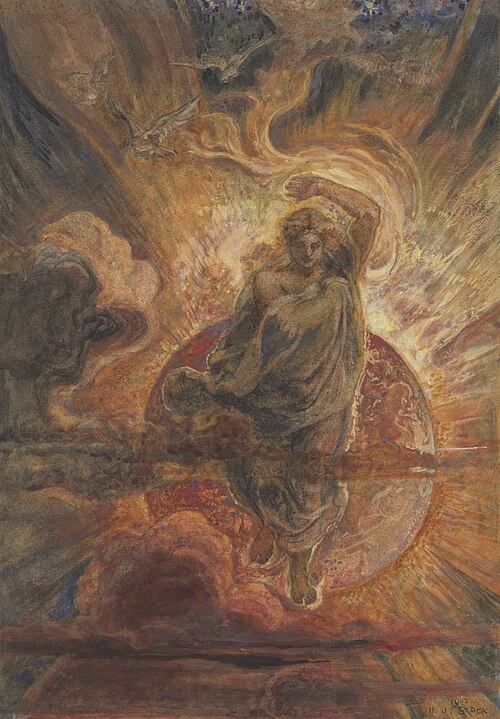 Henry John Stock, ‘And I saw an angel standing in the sun’ (Revelation 19-17), 1910, pencil and watercolor heightened with bodycolor on board (Public Domain).